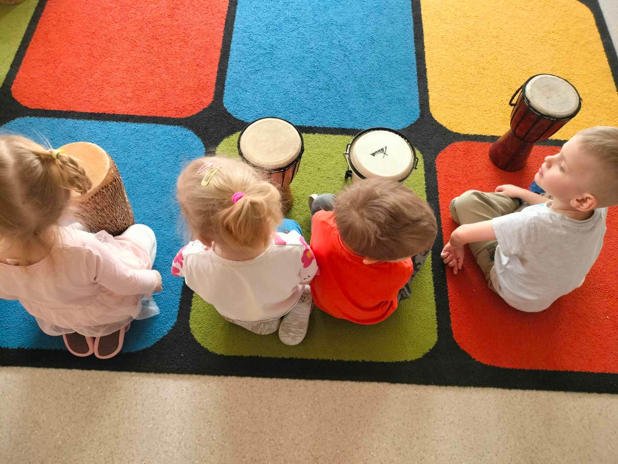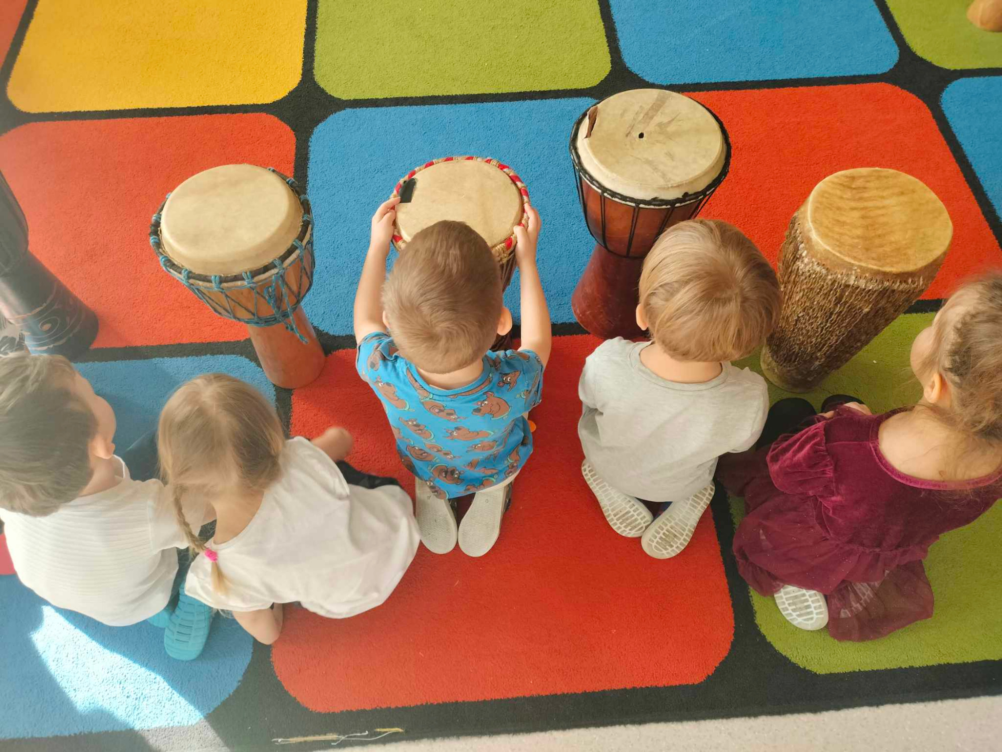 Dnia 07.03.2025r. odwiedził nasze przedszkole prawdziwy Bębniarz, który szybko zaraził dzieci miłością do muzyki. Podczas tego niezwykłego spotkania dzieci dowiedziały się gdzie i jak powstają prawdziwe bębny oraz jak się na nich gra. Każde dziecko miało okazję zagrać na bębnach naśladując gesty i rytm Bębniarza. Wspólne granie wzbudziło wiele emocji i wrażeń. Uśmiech nie znikał dzieciom w twarzy.