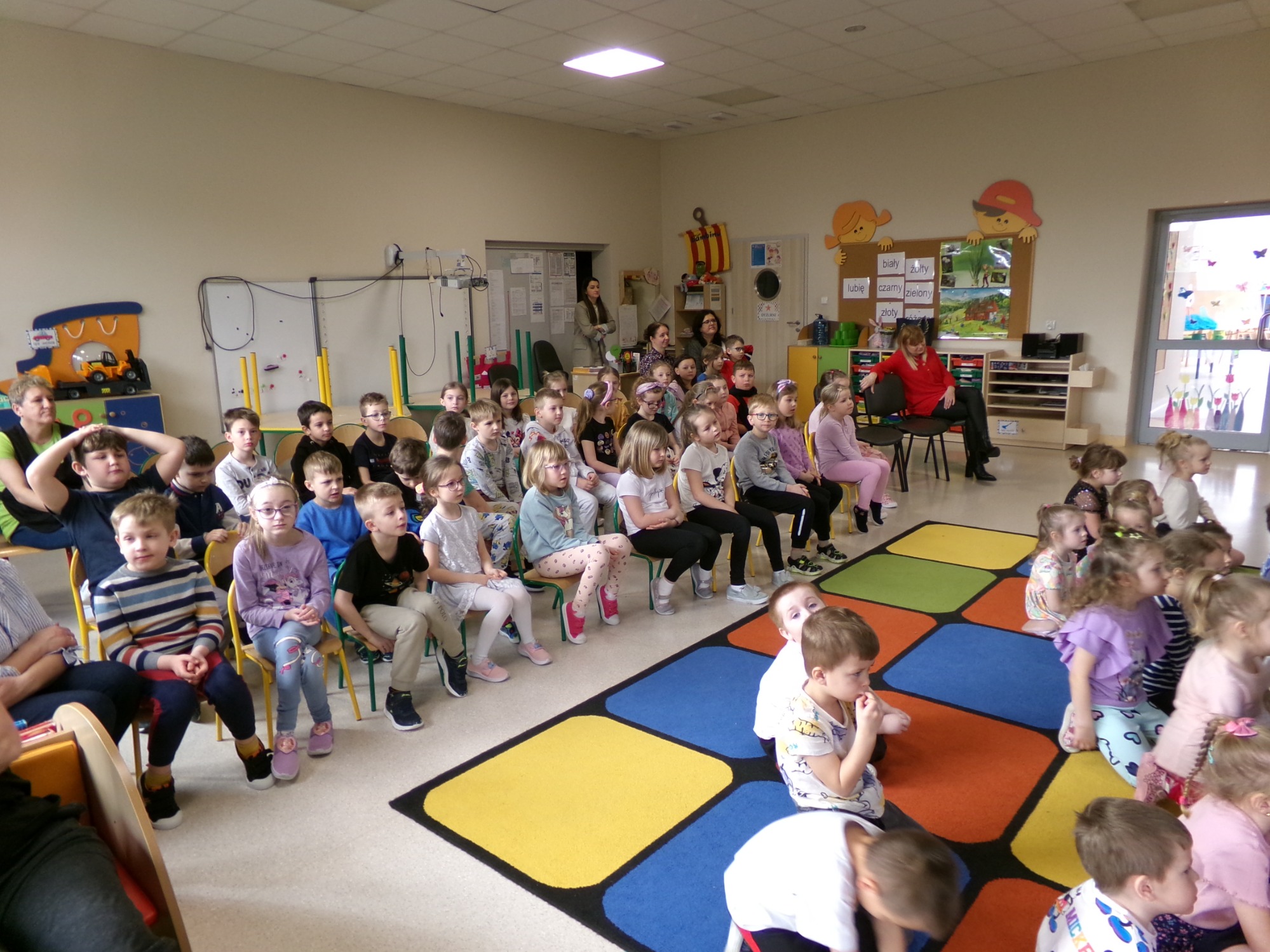 Gośćmi przedstawienia byli zarówno koleżanki i koledzy z przedszkola, jak i dzieci z klasy II Szkoły Podstawowej nr 14, którzy wspólnie podziwiali talent małych aktorów.