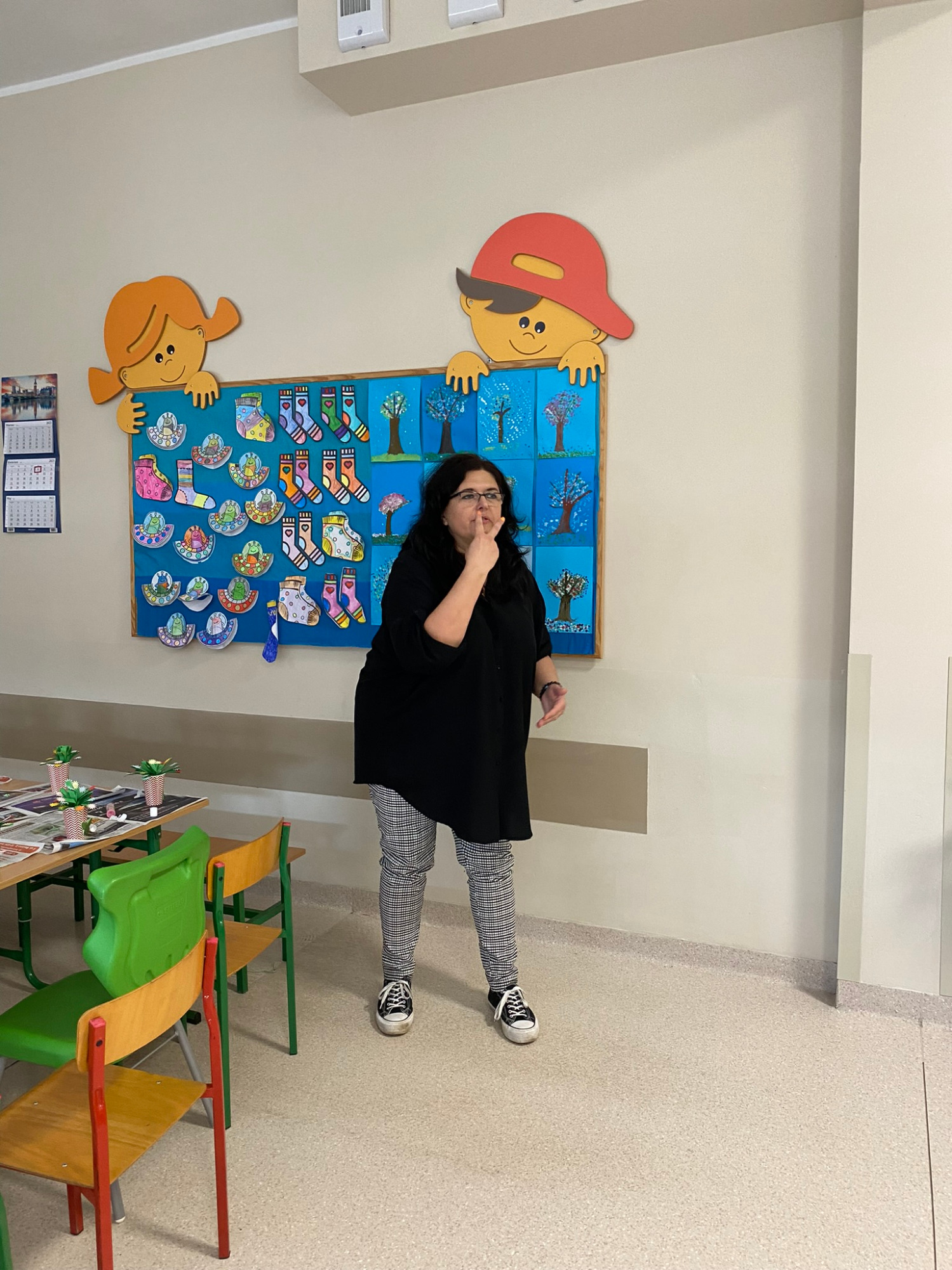 Dzieci miały także okazję wziąć udział w kreatywnej pracy plastycznej, którą wykonały razem z większymi kolegami. Wspólna zabawa w artystycznym projekcie dostarczyła wszystkim wiele radości i satysfakcji. Dzieci wykazały się dużą pomysłowością, a efekty ich pracy były naprawdę imponujące!