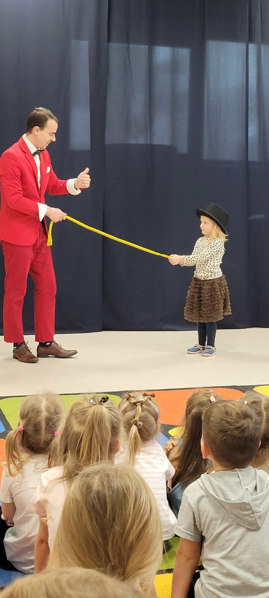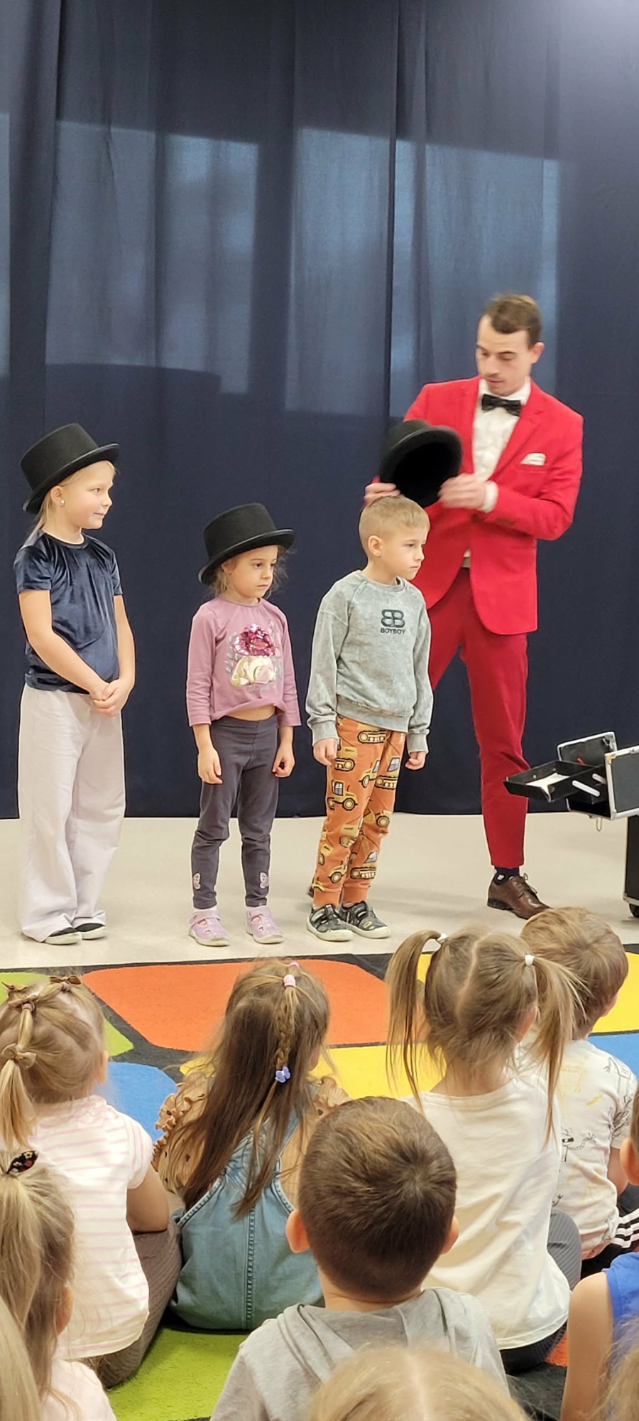 Nasze przedszkolaki miały okazję przenieść się do świata magii podczas występu iluzjonisty. Dzieci z zapartym tchem obserwowały znikające przedmioty, tajemnicze sztuczki i zabawne magiczne niespodzianki. Nie zabrakło wspólnego śmiechu, a niektóre dzieci mogły nawet wystąpić w roli pomocników iluzjonisty!