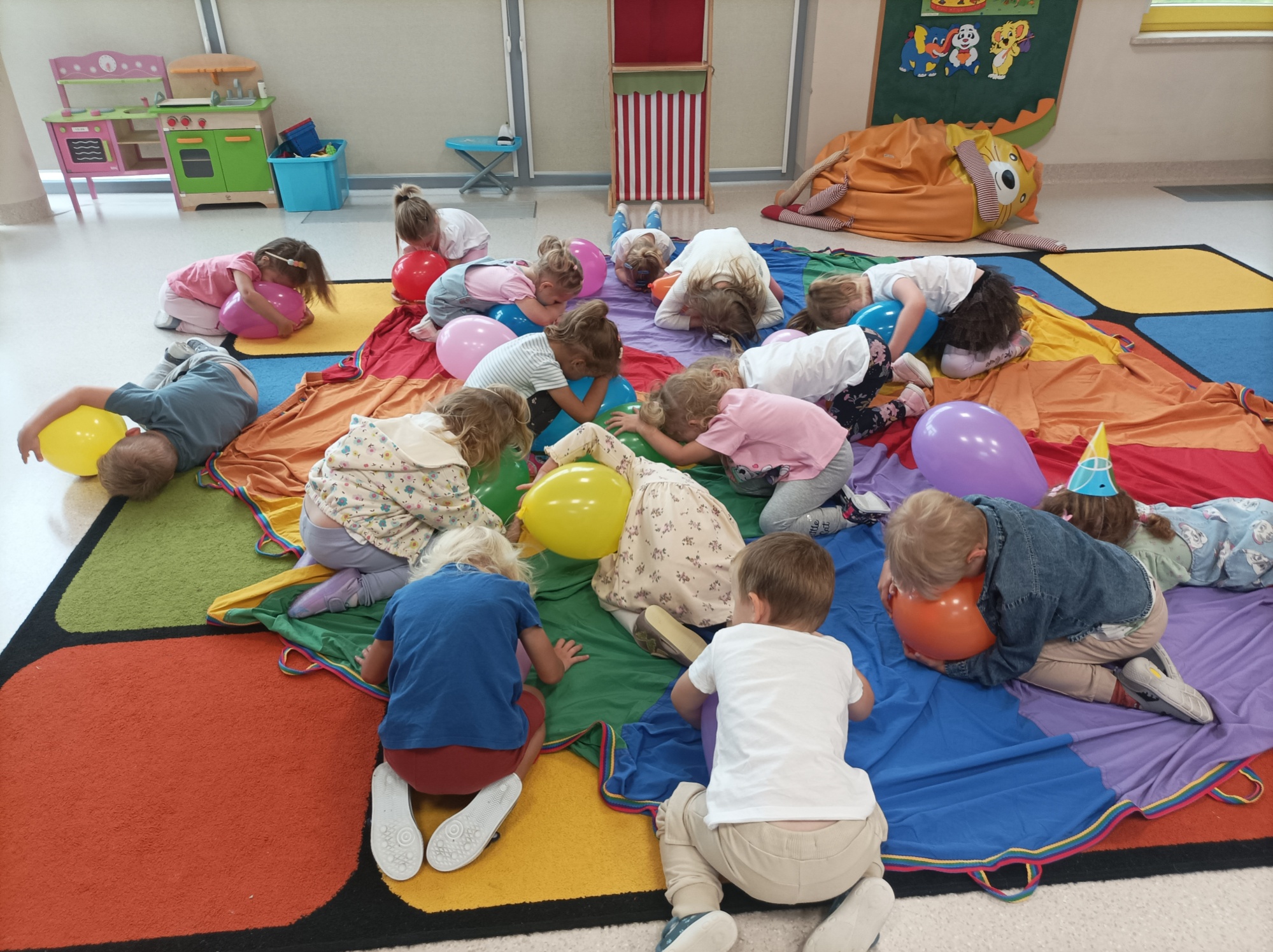 22 września wszystkie dzieci uczęszczające do przedszkola obchodziły swoje święto, gdyż przypada Ogólnopolski Dzień Przedszkolaka. Z tej okazji w naszym przedszkolu zorganizowane zostały zabawy ruchowe, zabawy z chustą animacyjną, zabawy taneczne